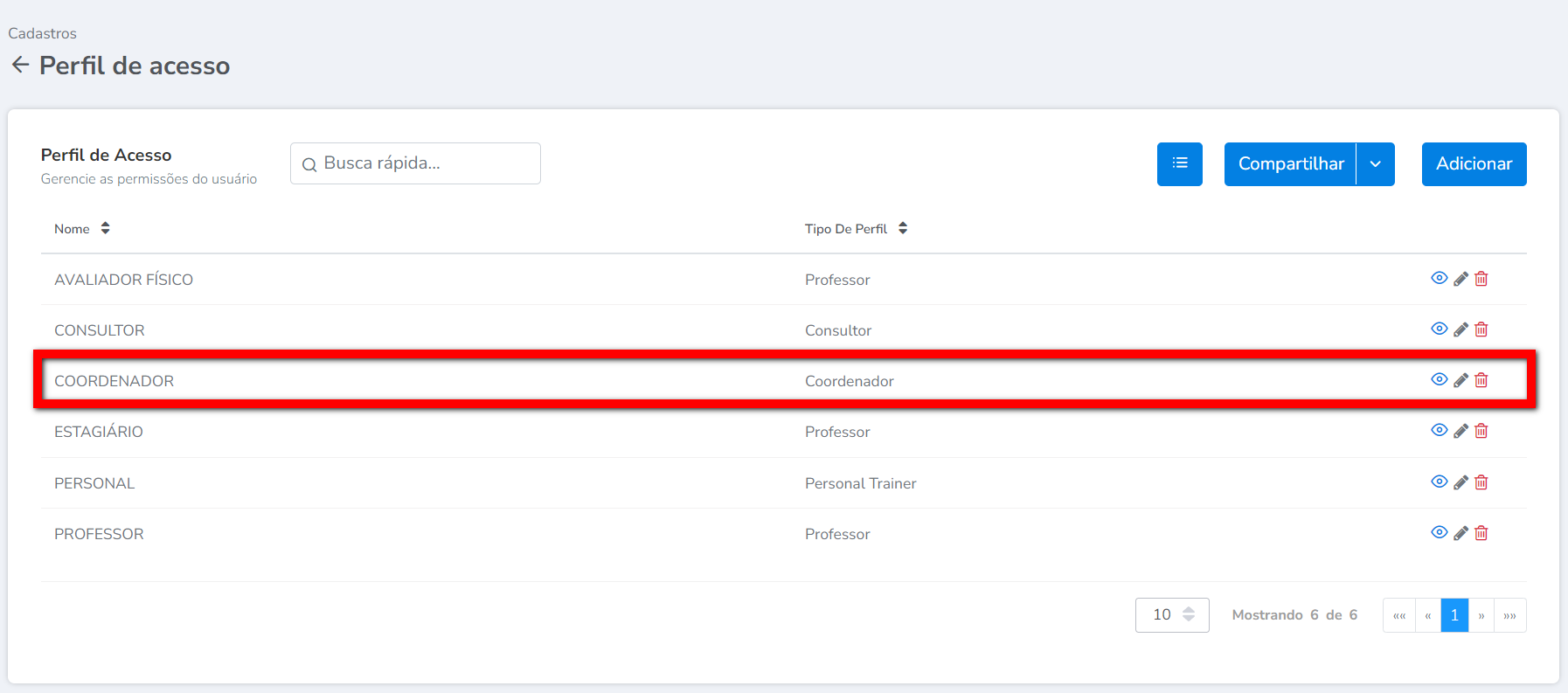 Atenção: todos os usuários com o perfil de acesso alterado, devem sair do sistema e acessar novamente para validar as alterações nas permissões. As permissões geralmente só podem ser editadas por usuários com perfil de Administrador/Coordenador.