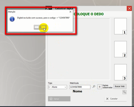 5. Pronto. Agora poderá cadastrar novamente a digital/facial no cadastro correto do aluno.