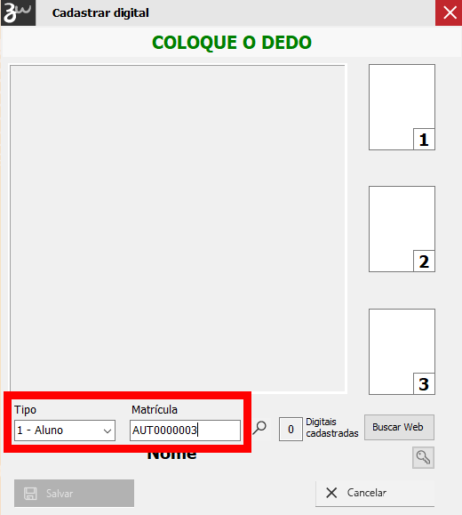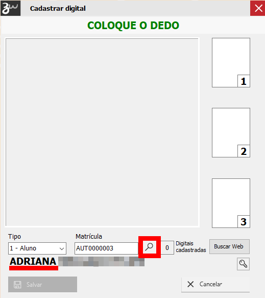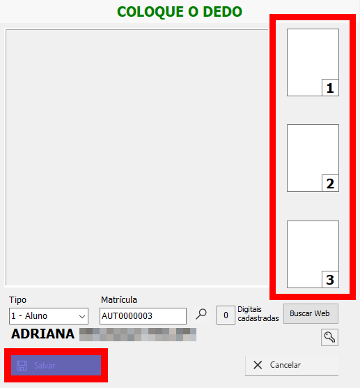 5. É necessário capturar a digital do cliente 3 vezes, depois, clique em "Salvar".