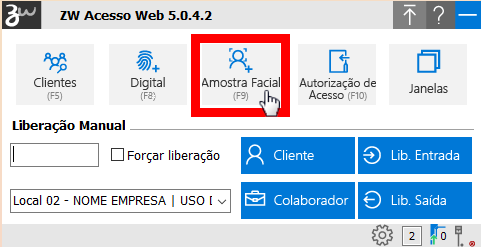 2. Será apresentado uma tela menor na parte lateral da tela, clique no botão "Amostra Facial";