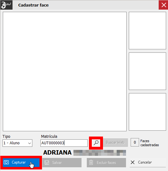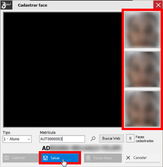 5. É necessário capturar a facial do cliente 3 vezes, depois, clique em "Salvar".