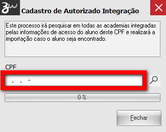 3. Neste campo, informe o CPF do aluno que deseja pesquisar as informações de acesso e realizar a importação. Em seguida, clique neste ícone ;