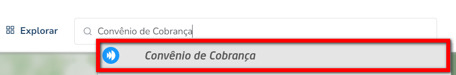 1.1. No módulo ADM, na lupa de busca pesquise por "Convênio de Cobrança";