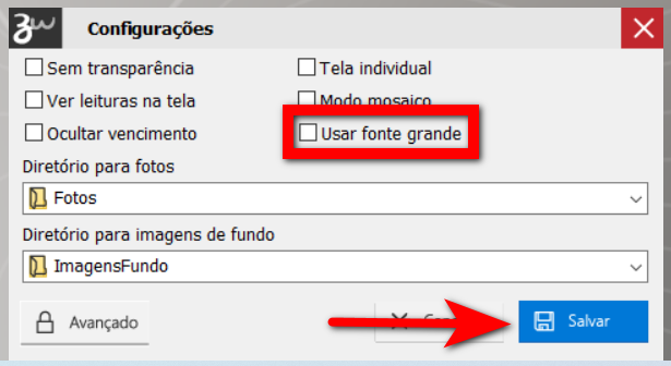 2. Marque a opção “Usar fonte grande” e clique em “Salvar”;