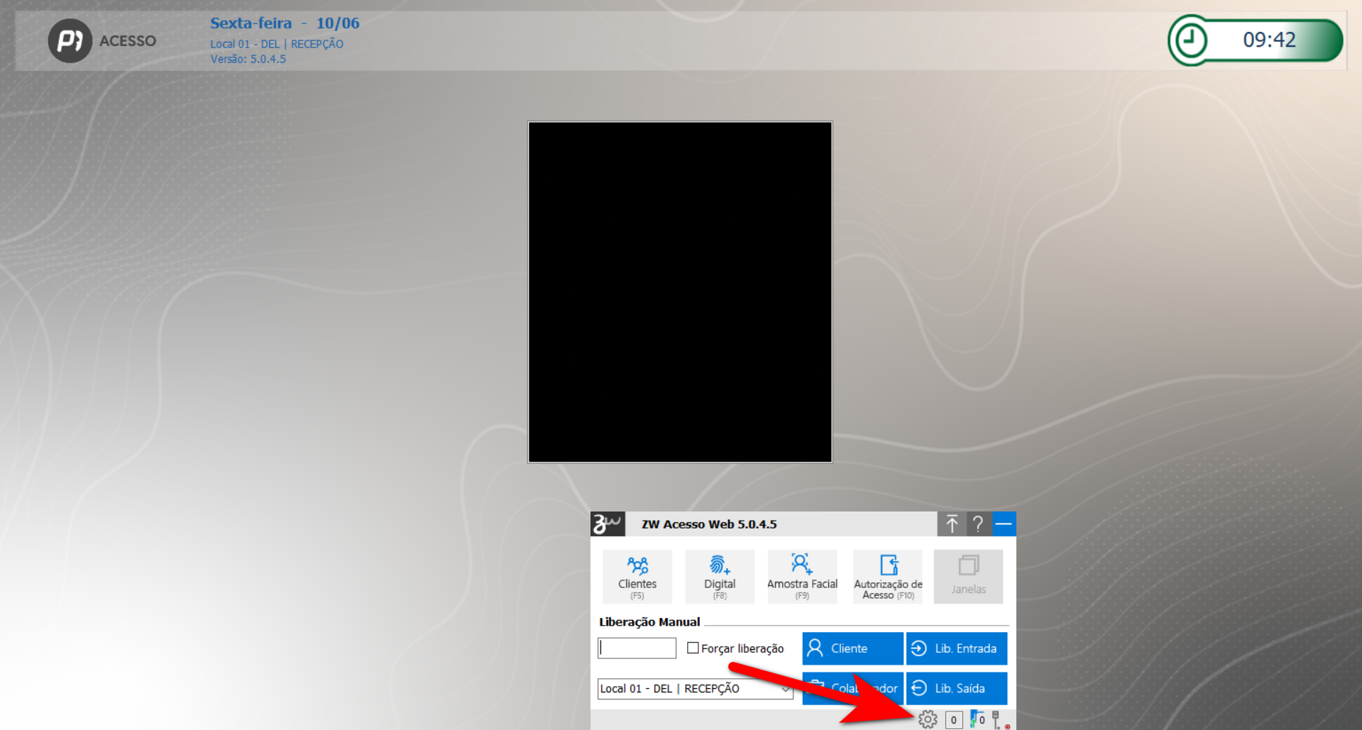 1. Com o programa do Acesso aberto, clique no ícone de engrenagem;