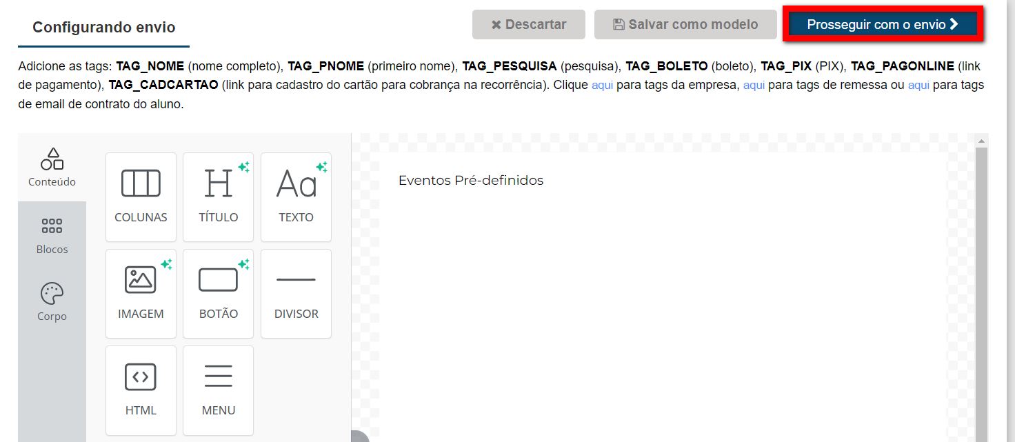 3. Após definir a mensagem, clique em “Prosseguir com o envio”;