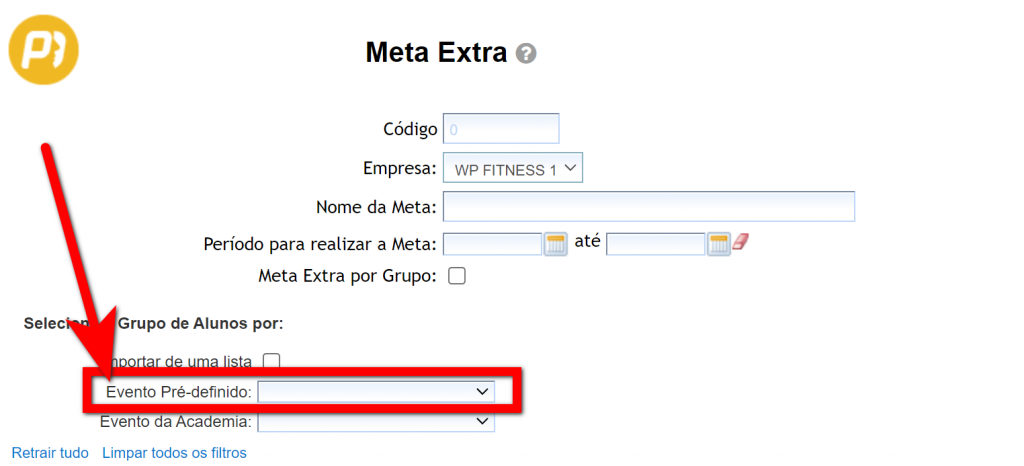 Por exemplo: a aluna Ana contratou plano de musculação e ganhou 30 pontos do clube de vantagens. Ao verificar essa meta ou configurar para enviar e-mail, colocando no máximo 29 em “Quantidade de pontos” a aluna Ana estará na lista desse evento.