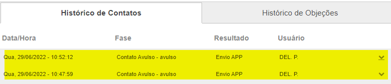 Exemplo prático: no dia 29/06/2022 às 10h47min enviei uma mensagem para o aluno João, que respondeu a mensagem no dia 29/06/2022 às 10h52min, então consta no histórico dois registros.