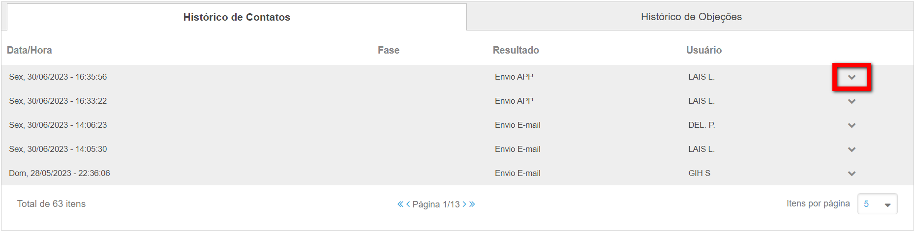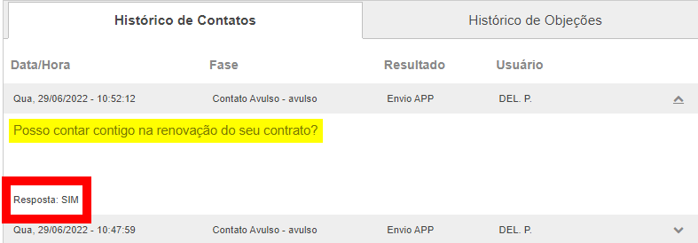 O Histórico de Contatos permite ver todos os contatos registrados para um aluno e é através dele que podemos visualizar as respostas dos alunos.