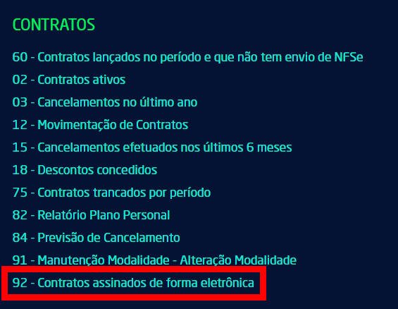 3. Localize o campo "Contratos" e clique na opção "Contratos assinados de forma eletrônica";