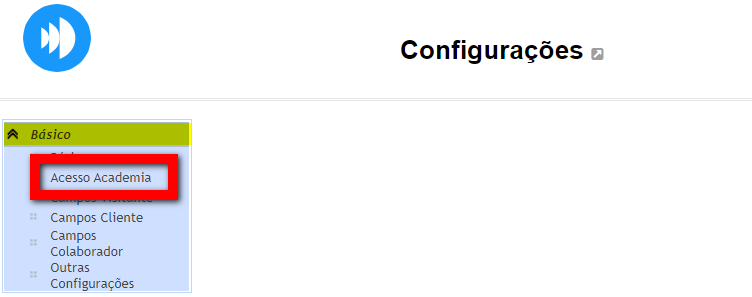 2. Clique em “Básico” e após, clique em “Acesso Academia”;