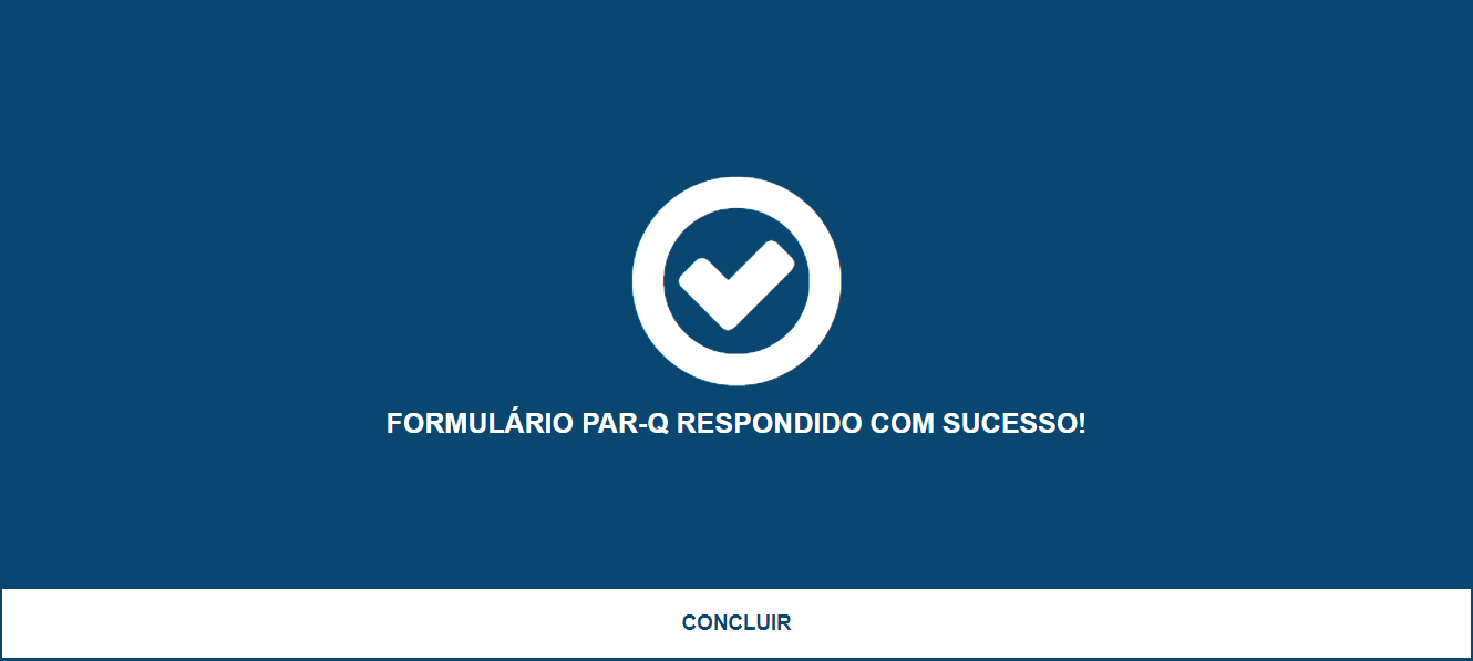 4. Pronto. Será apresentada a seguinte imagem confirmando que o formulário Par-Q foi assinado pelo aluno.