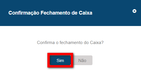 3. Após validar as movimentações realizadas no caixa, clique em "Confirmar fechamento"; 4. O sistema apresentará uma confirmação do fechamento de caixa, clique em “Sim”.