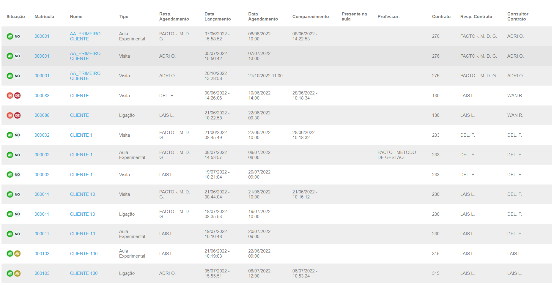 - Consultor Contrato: apresenta qual o consultor responsável, vinculado no cadastro dos alunos.