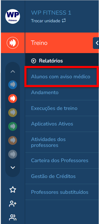 2. Em seguida, clique em “Alunos com aviso médico”;