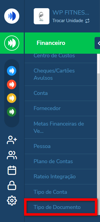 1. No módulo financeiro, na lupa de busca pesquise por “Tipo de Documento”;