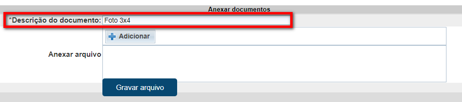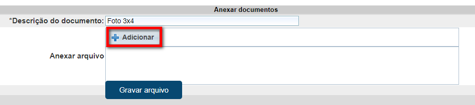 3.2.2. Em "Anexar arquivo" iremos adicionar o documento. Para isso clique em “Adicionar” e localize o documento em seu computador;