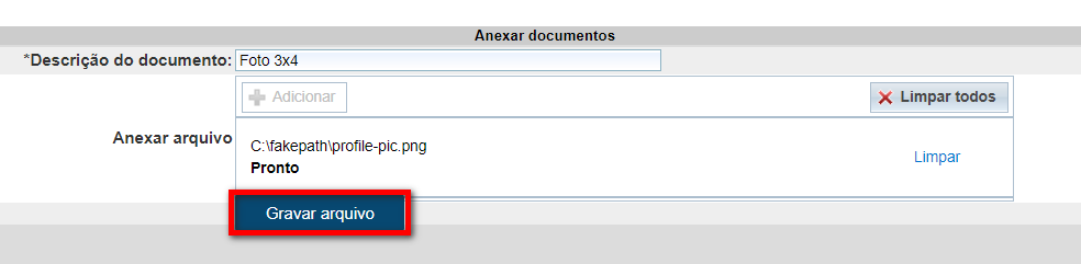 3.2.3. Clique em “Gravar arquivo” para armazenar no sistema.