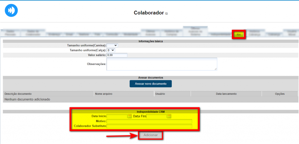Para saber como adicionar indisponibilidade CRM de um colaborador, clique aqui.