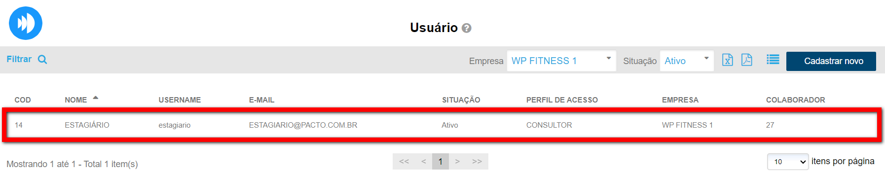 2. Localize e clique sobre o "Estagiário";