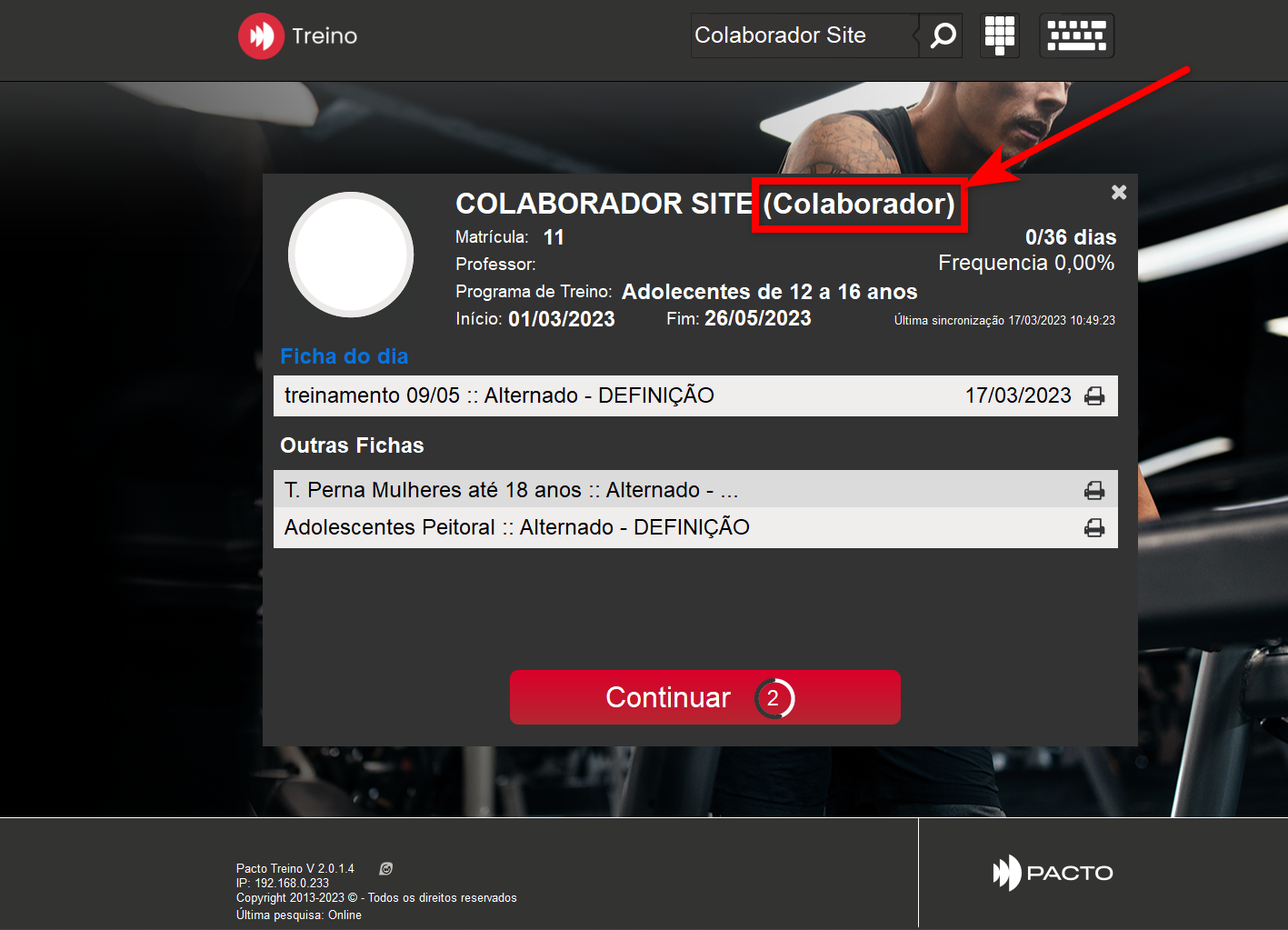 Atenção: peça a todos os colaboradores para deslogarem o sistema e realizarem o login novamente para apresentar "Prescrição de treino".