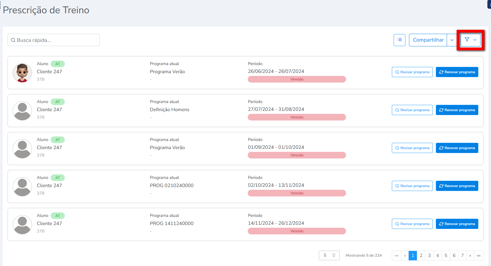- Vencido: pessoas que estão com o programa de treino vencido;