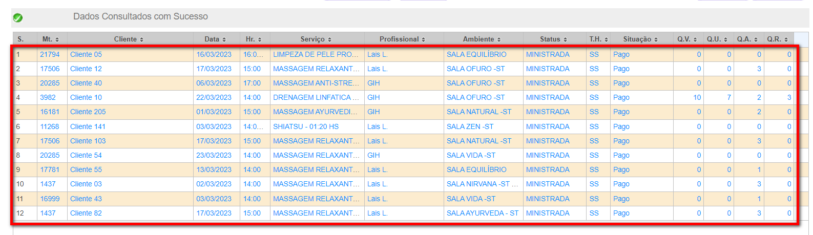 4. Logo é apresentado o resultado conforme os filtros selecionados;