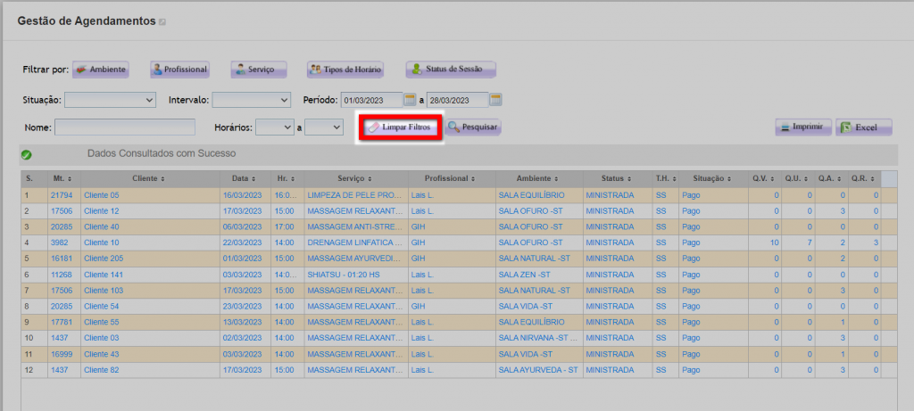 1. Caso queira limpar todos os filtros de uma vez é possível clicando em "Limpar Filtros";