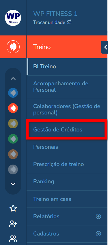 1. No módulo do Treino, no menu lateral esquerdo clique em “Gestão de Créditos“;