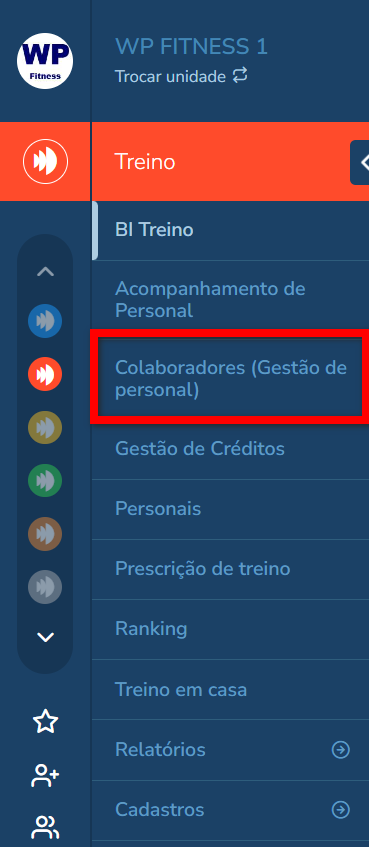 1. Acesse o módulo Treino, e no menu lateral esquerdo clique em “Colaboradores (Gestão de personal)“;