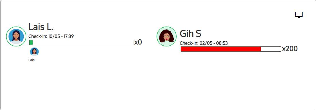 3. Dados sobre a data e hora de início do check-in serão exibidos juntamente com o nome do personal;