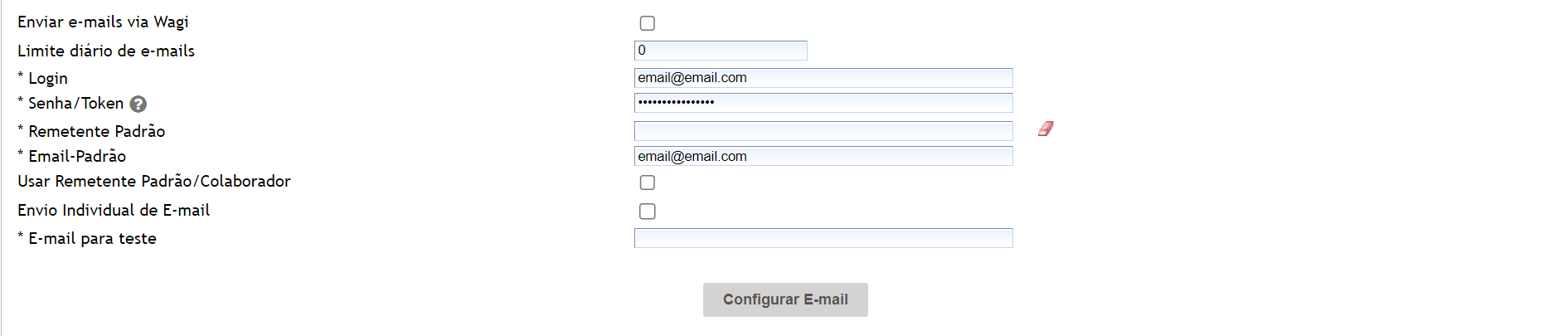 2.1. Na primeira parte é onde realiza a configuração do e-mail da empresa. Temos as configurações para alguns servidores de e-mail, para visualizar as configurações separadas por servidor de e-mail clique aqui.