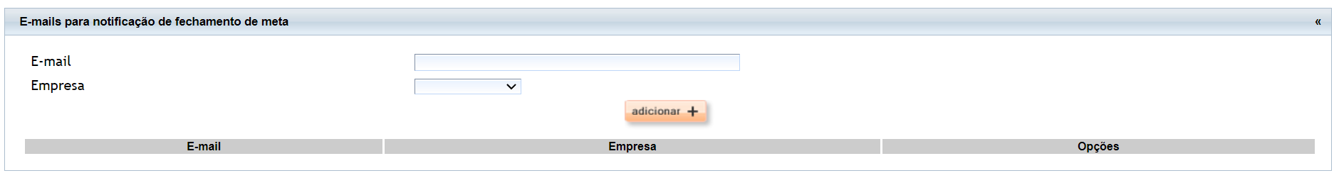2.3. No bloco "E-mails para notificação de fechamento de meta" é onde configura qual o e-mail que ira receber as metas realizadas pelos colaboradores. Para saber como configurar clique aqui.