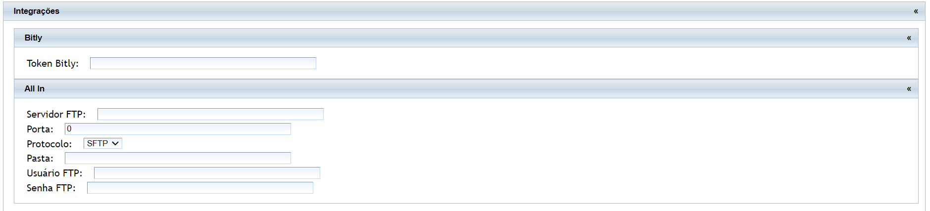 Bitly: informe o token de integração com o Bitly;