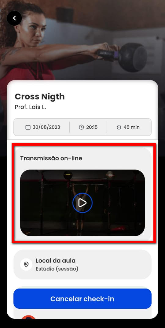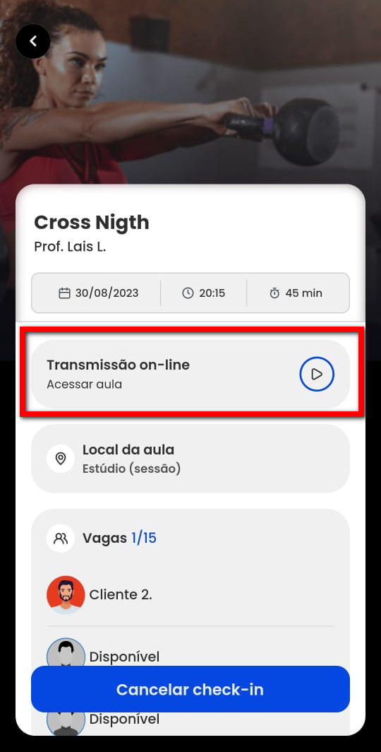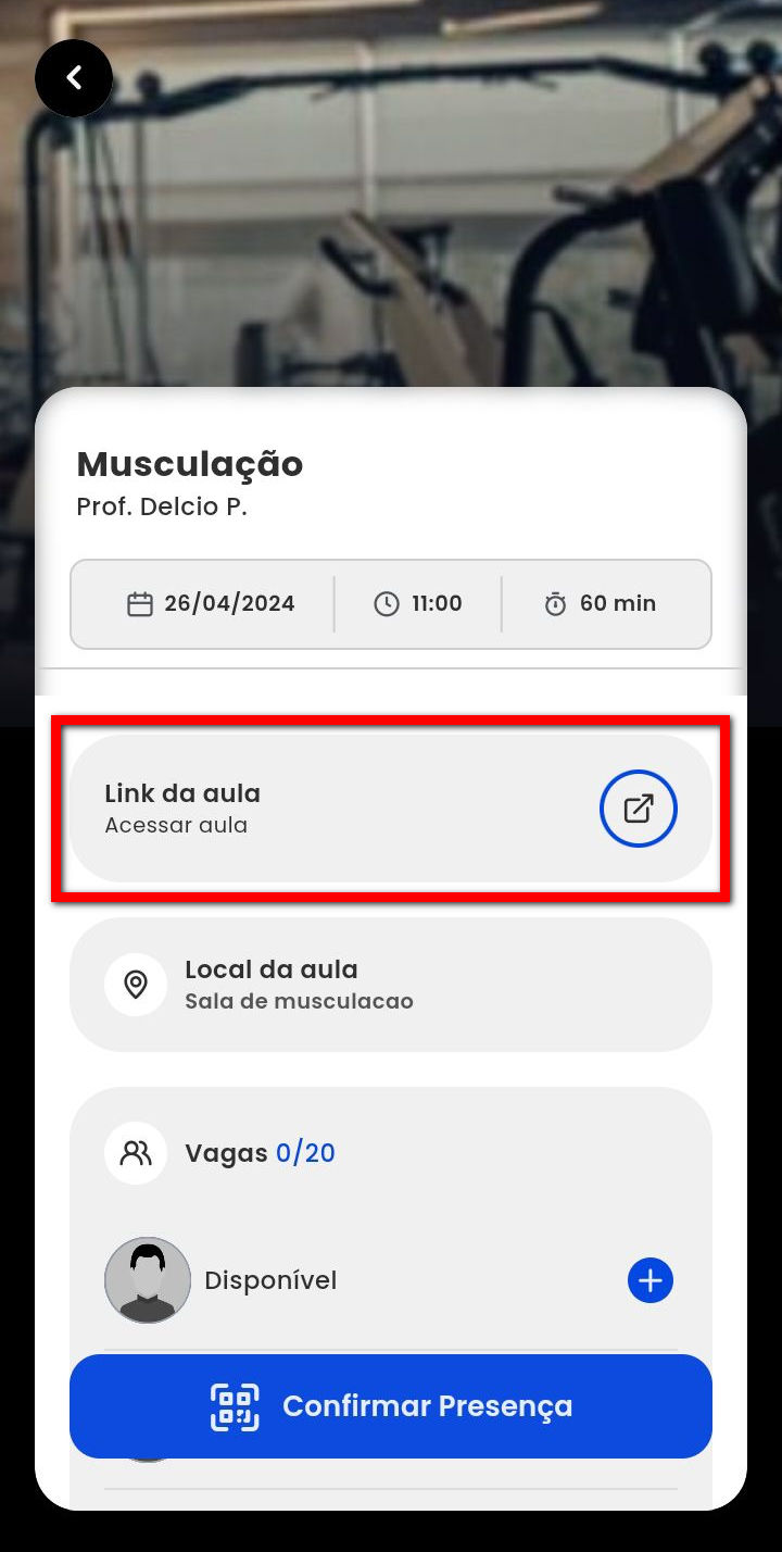 1. Ao acessar a tela de aulas no aplicativo, localize e clique sobre a aula que já está participando.