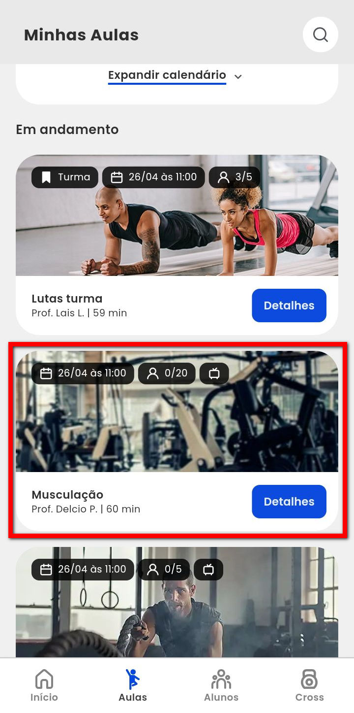 1. Ao acessar a tela de aulas no aplicativo, localize e clique sobre a aula que deseja.
