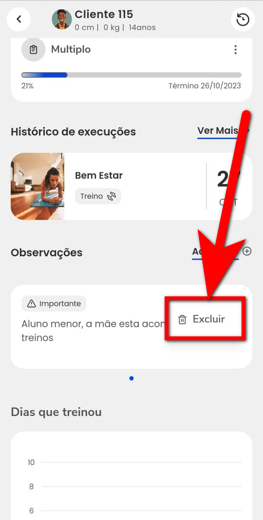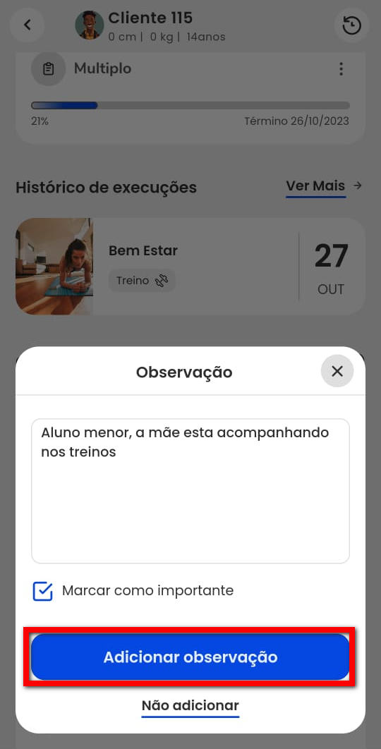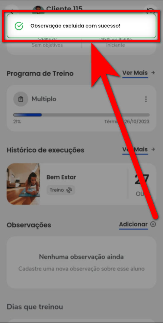4. Para excluir uma observação adicionada anteriormente, clique no ícone