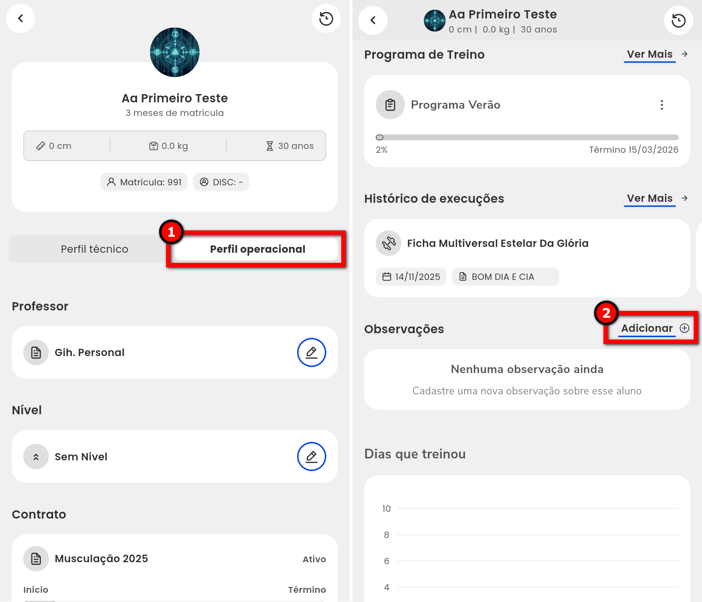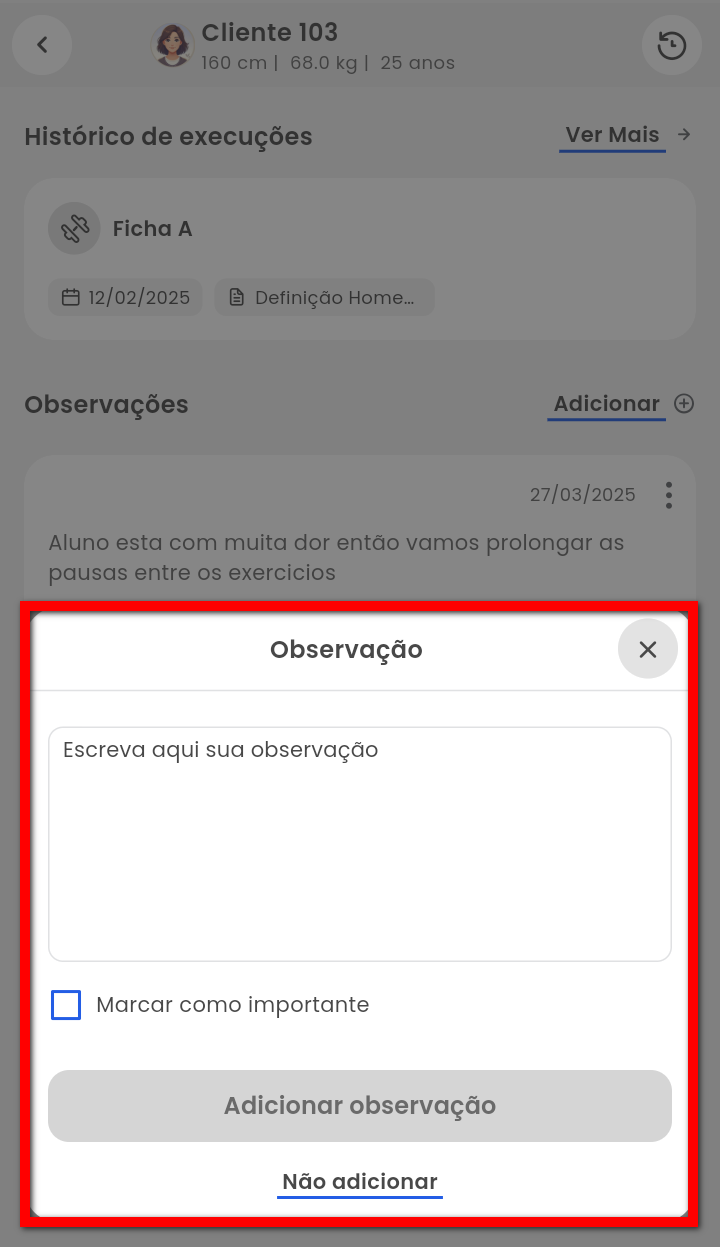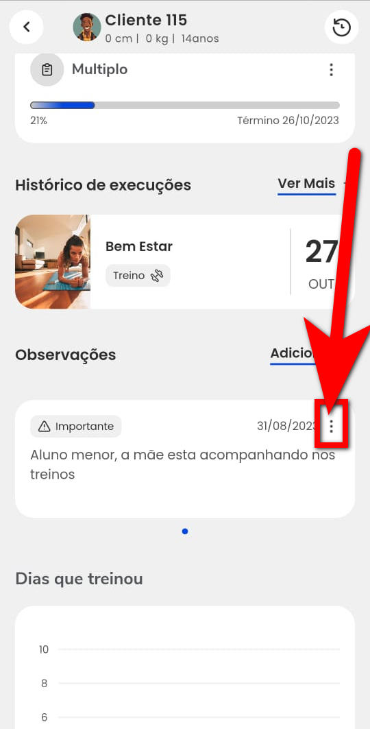 Em algumas situações, pode ser necessário adicionar ou remover uma observação no perfil do aluno.