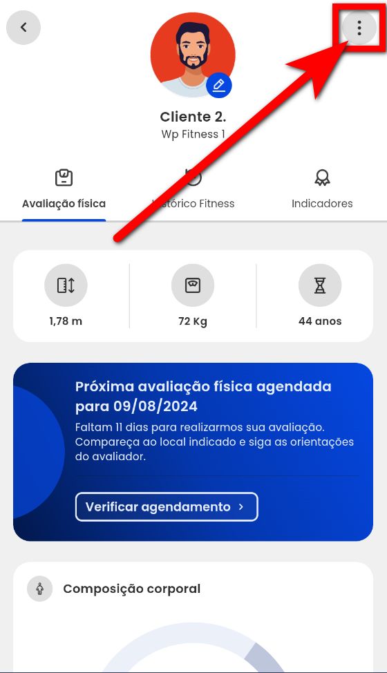 2. Já na tela do perfil do aluno, clique neste ícone ;
