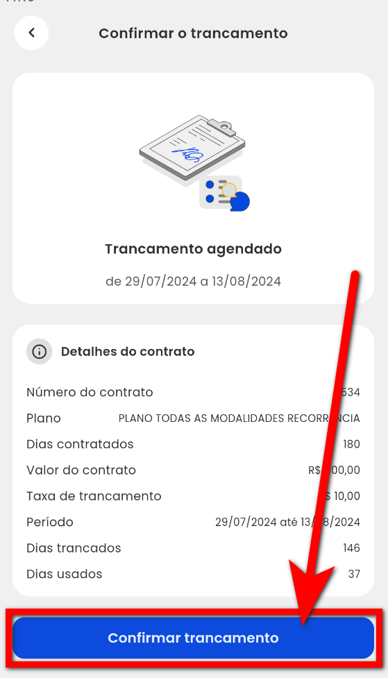 7. Pronto, a solicitação do trancamento foi realizada, basta aguardar que no dia seguinte, após a solicitação, o contrato já estará trancado.
