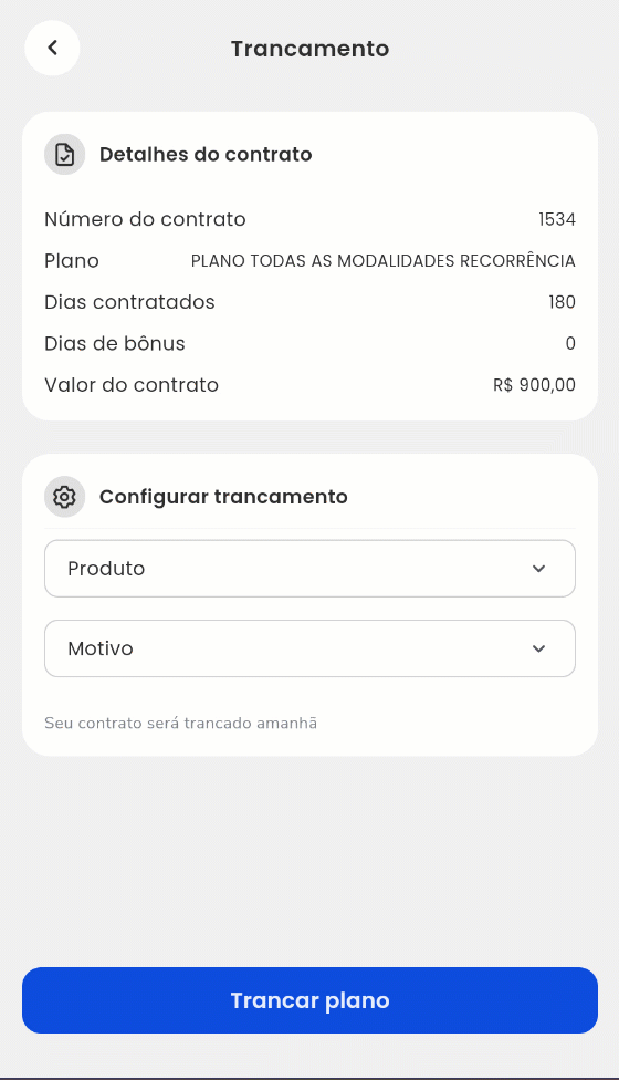 - Produto: selecione o produto de trancamento desejado;