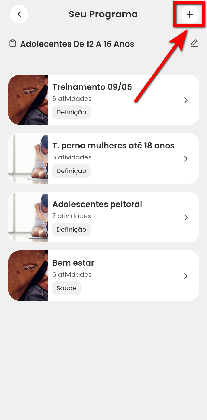 Para saber como adicionar exercícios na ficha de treino pelo aplicativo, clique aqui.