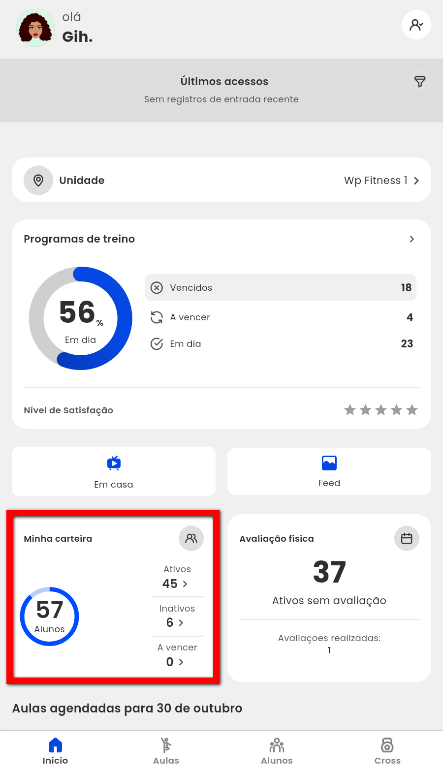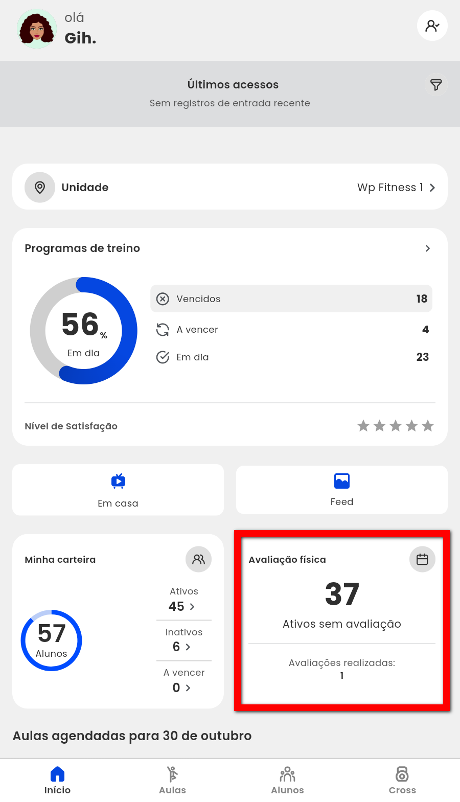 4. No dashboard “Avaliação física“, em “Agendadas” são todas as reavaliações físicas previstas, e em “Avaliação realizadas” são todas as avaliações que foram realizadas;