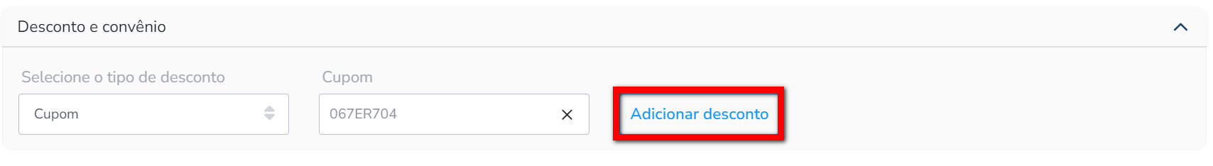 2. Em seguida no campo “Cupom” digite o cupom de desconto que deseja e clique em “Adicionar desconto“;
