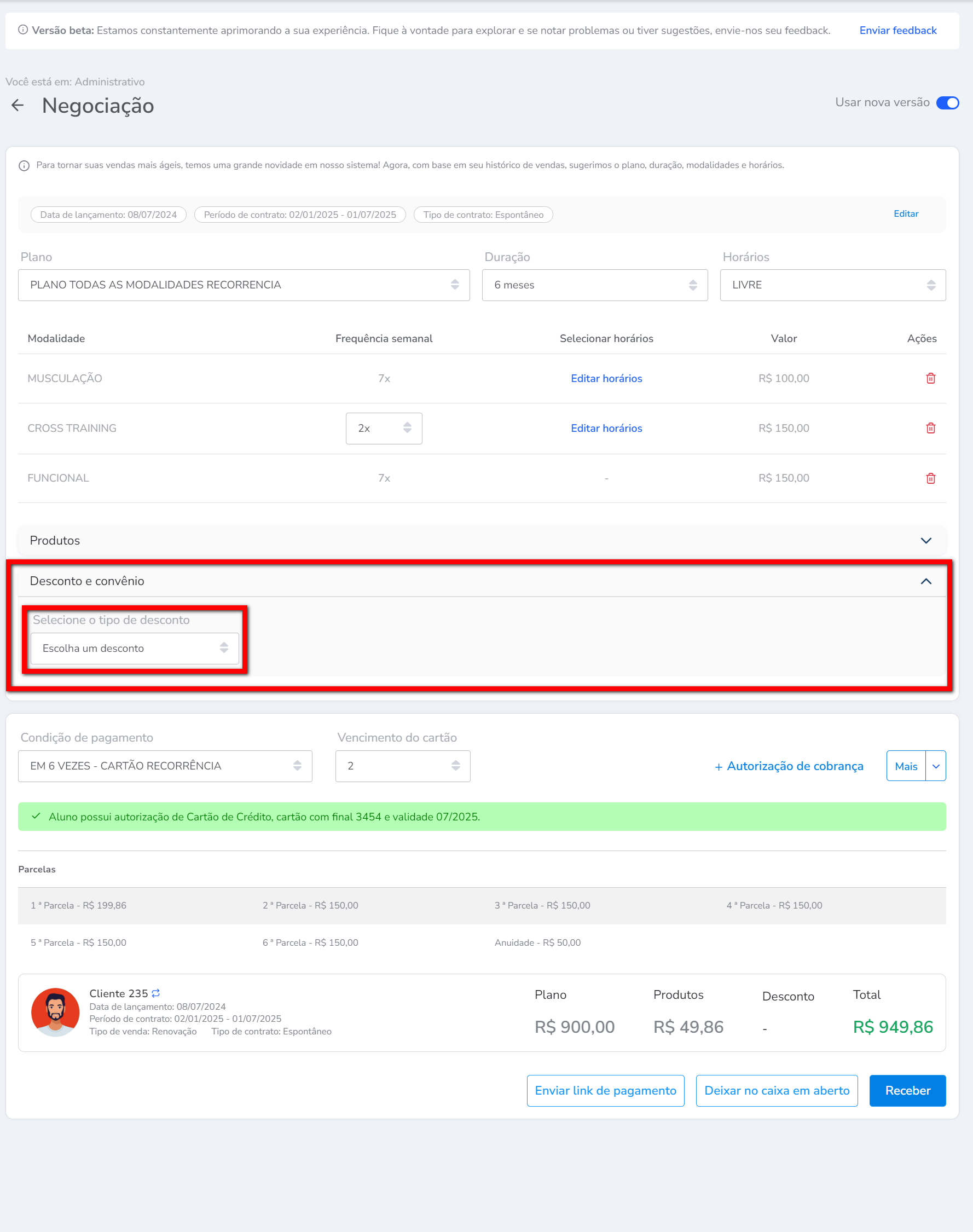 3. Por fim, no resumo na negociação será apresentado o desconto aplicado.