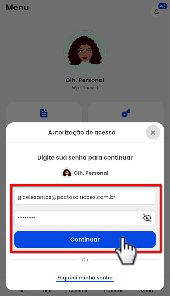 3. Confirme seu login informando e-mail e senha e clique em “Continuar”;