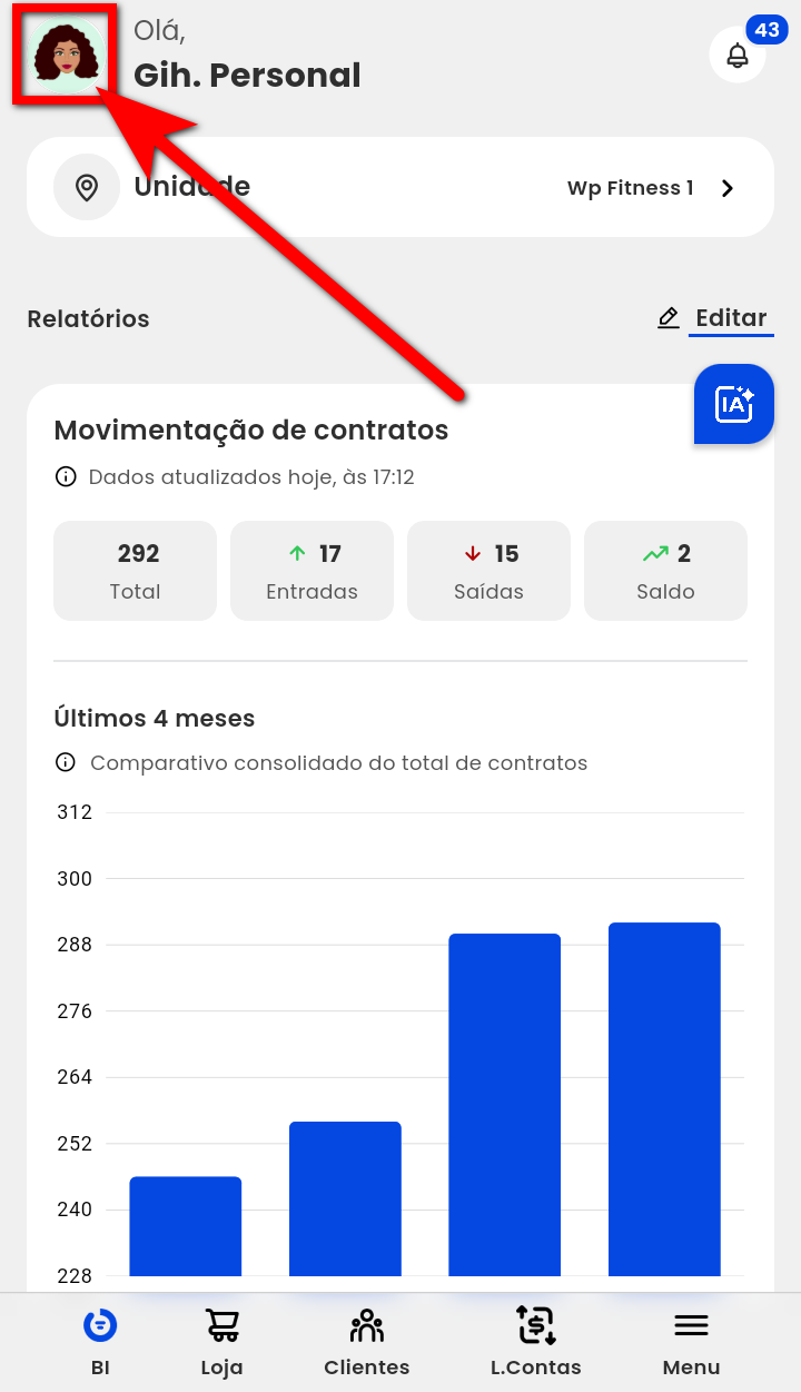 1. Ao acessar o Pacto App, clique sobre a foto de perfil;