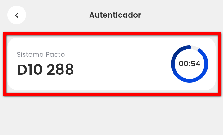 Atenção: o código de autenticação no Pacto App contém um tempo de duração de 01:00 minuto.