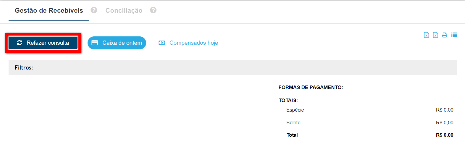 Observação: para uma consulta mais precisa, clique no botão "Limpar Filtros" e, em seguida, faça a consulta desejada.