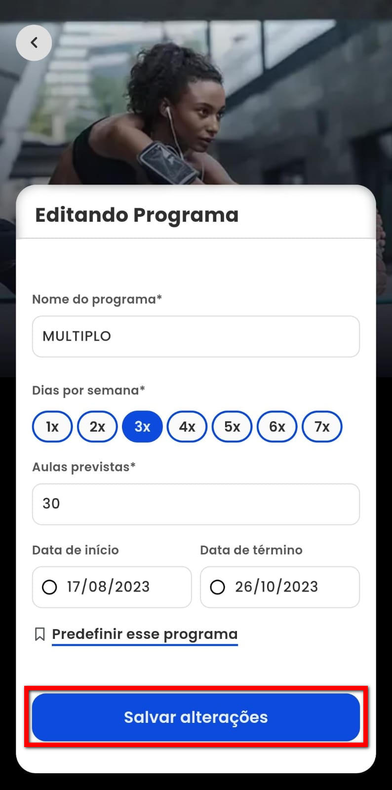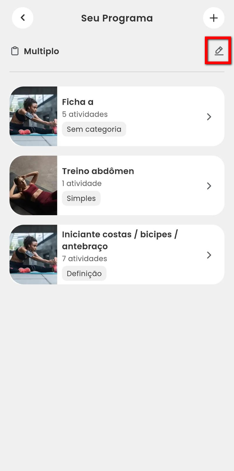 4.1. Para editar a configuração do programa de treino clique no ícone ;